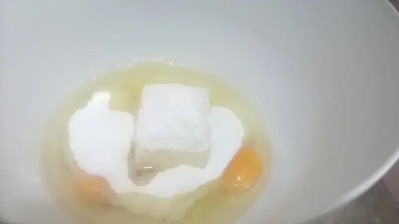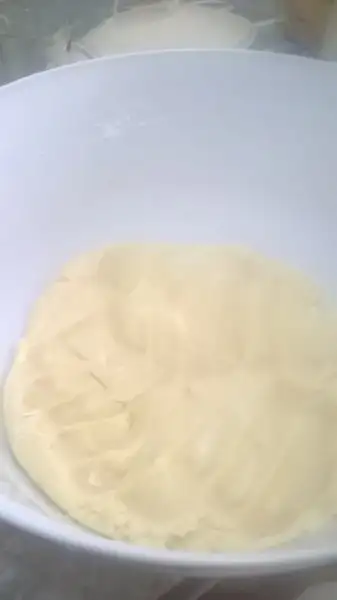 Margarin sıvı yağ yumurta beyazi sirkeli su kabartma tozu kariştirilir.