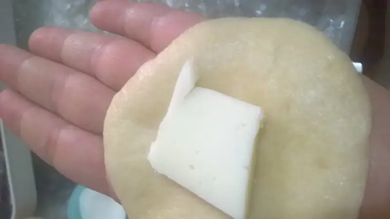 Ceviz büyüklüğünde parçalar kopartılır içine kaşar konur.ve D seklinde kaptılıp az yağlanmiş tepsiye konur.