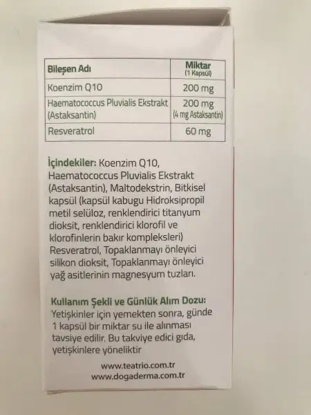 güzel CAnım ben bir bakarım ama sanırım o etken madde içinde 4 mg astakşantin var gibi anladım.Eki Görüntüle 2158583 Bu canım dışı.
