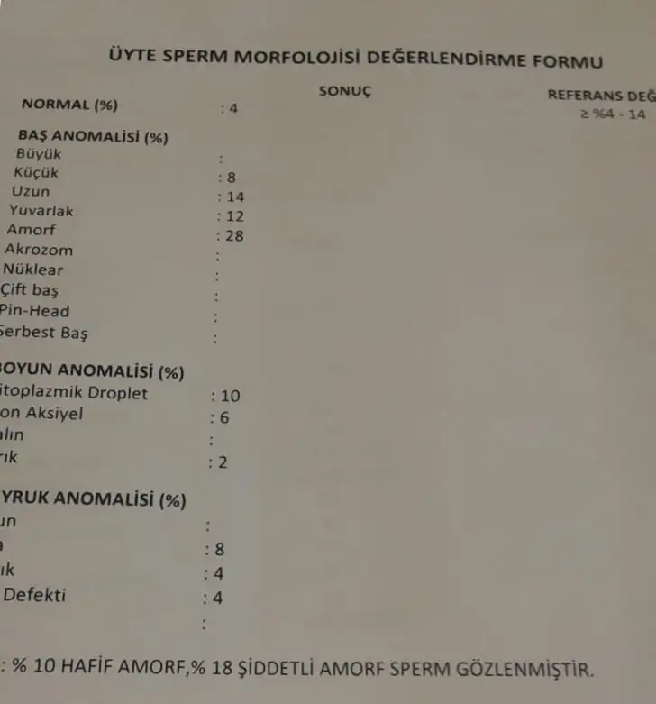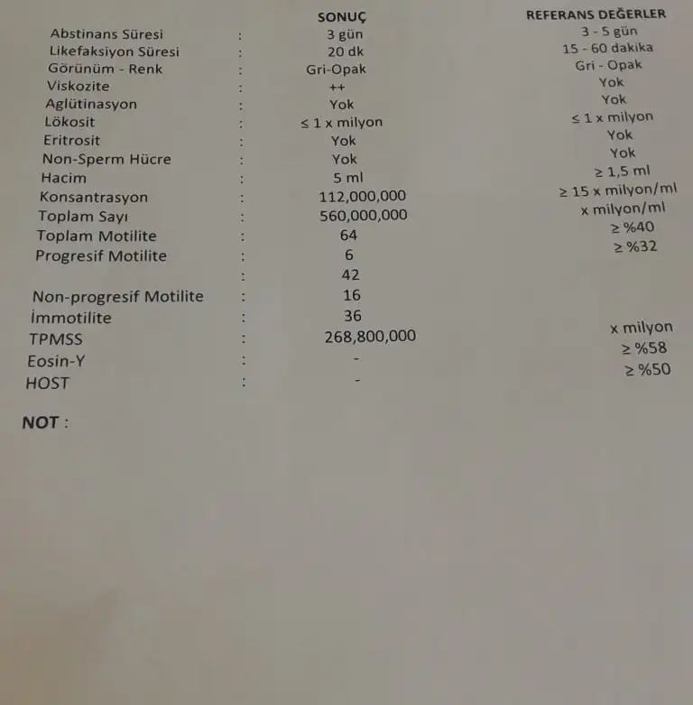 Teşekkür ederim cevabınız için 3 yıl oldu bu işe başlayalı.En iyi değerimiz bu.sigarayı tamamen bıraktı keçiboynuzu kürü ki daha önce de yapmıştım fayda etmemişti çakırı suyu ara ara havuç portakal suyu bu da ara ara e vitamini ve promen k kullandık üç aydın.Bilmiyorum hangisi etki etti.Bu sonuçlarla normal hamile kalma şansınız bile var.