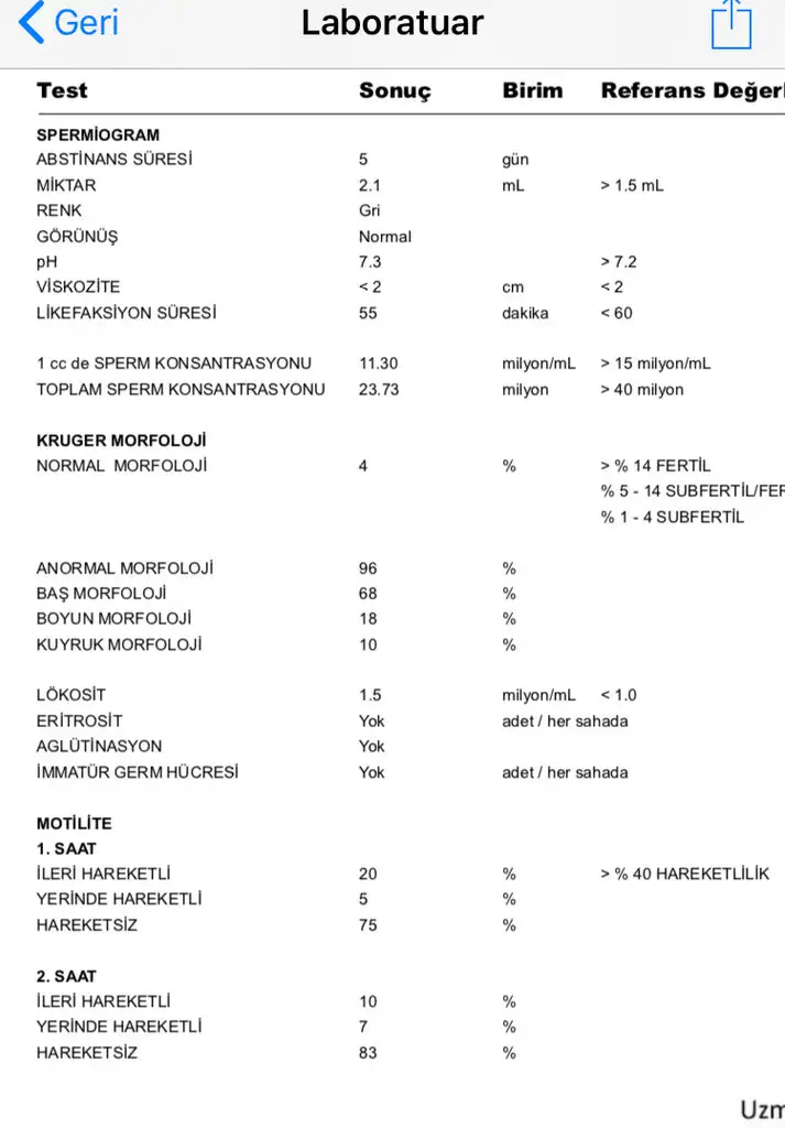 Amin inşallahMerhaba, sayı ve ileri hız değerleri bahsettiğiniz takviye ile yükselmişti bizim, morfolojiniz zaten bizden daha iyi bile, bir de isterseniz omega 3 alın hem eşiniz hem siz, inşallah hayırlı haberlerle gelirsiniz.