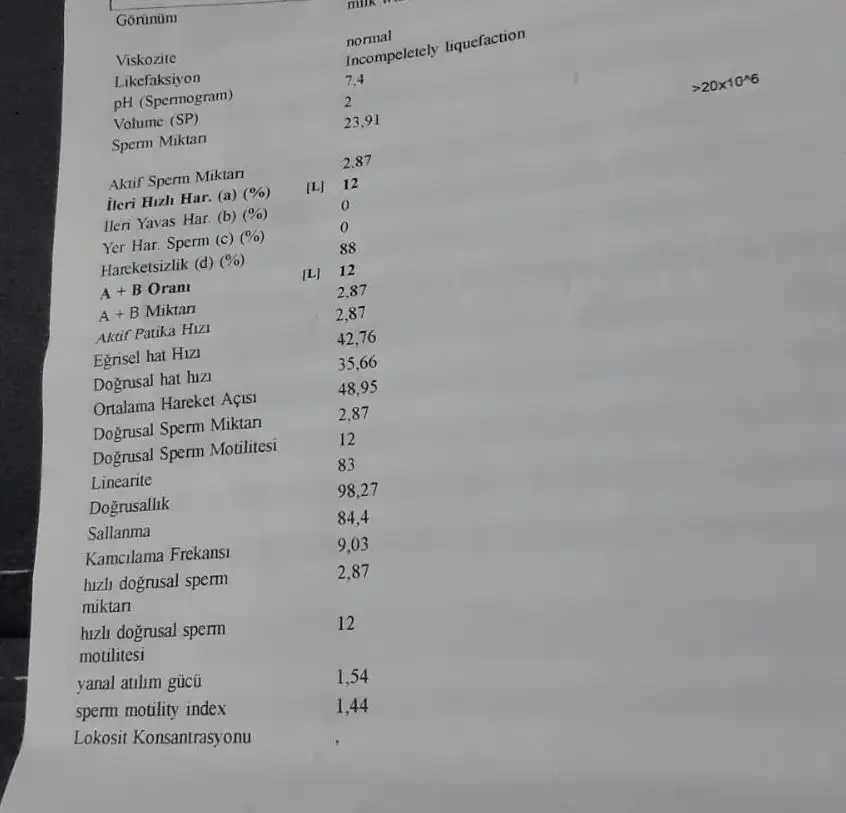 İyi çok şükür ama 1 gün baya terledi falan inşallah 1 günden bir şey olmaz ne diyeyim. Spermler pamuk ipliğine bağlı sanki.Himm ben normal tahlil zannettim. Belki gecer ozamana kadar.