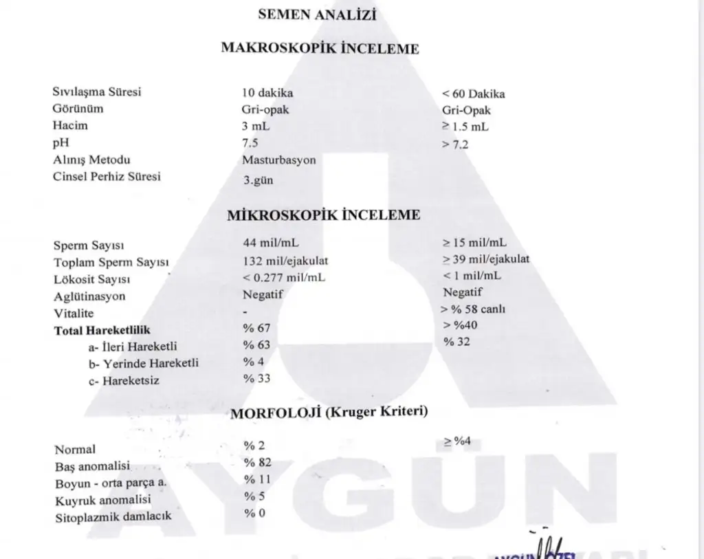 Morfoloji biraz düşük diğerleri normal. Sınırlar içerisinde gayet güzel ama morfoloji ye tekrar baktiein cnk o spermin yumurtayı delme kapasitesini gösteriyor o sknti ki olunca doğal. Yoldan gebelik gecikiyorMerhaba kızlar test sonuçları nasıl? Bilenler yorumlayabilir mi lütfen