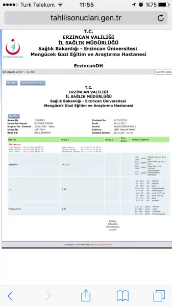Lh 7,45 cnm progeston 1.17 estradiol 734.43Net göremiyorum ama lh yükselince çatlıyor yumurtalar. Zaten hani ovulasyon kitleri de lh ın yükselişini ölçüyor ya. Çatlatma iğnesi vermedi mi? Lh ı yeterli gördüyse vermemiş olabilir onun kaç olması gerektiğini tam bilmiyorum. Kaç yumurta saydı kaç mm olmuşlar? Progestan da çatlamadan sonra yükseliyor tutunma için zemin hazırlıyor.