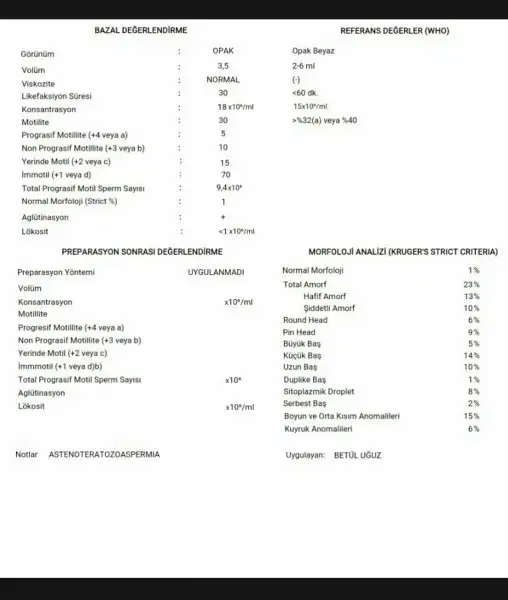 Fevzi bey, merhaba. Spermlerinizin oksidatif strese bağlı herhngi bir bozukluğu olmadığı görülüyor, yani DNA hasarı normal değerlerde. Sperm sayısı, morfolojisi ya da hareketinde olacak düşmelerden dolayı kaygılanmayın. Sperm DNA içeriği sağlıklı olduğu için, bunların önemi olmaz. Bundan sonra isterseniz doğal yolla çocuk olmasını bekleyebilirsiniz. Tüp bebek için de sperm yönünden bir sorun yok.