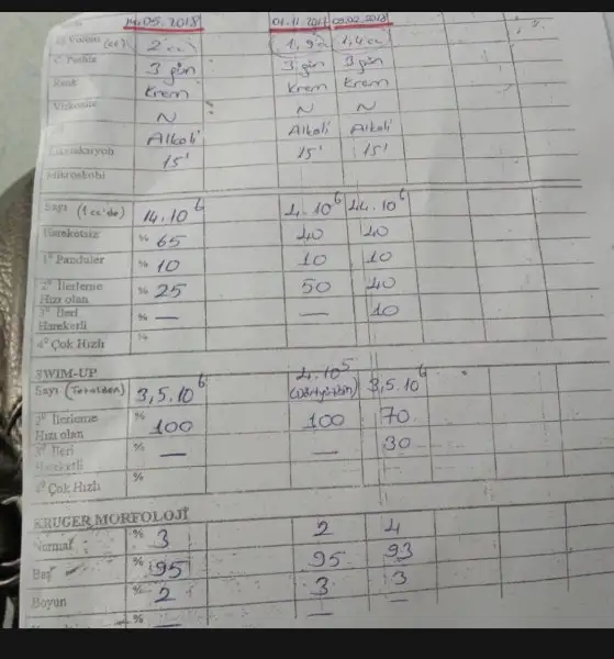 Aslında aynı şeyleri kullandık sebep bulamıyorum ben bana göre 2.aydaki hatalı çünkü sayı 4milypndan 44milypn nasıl olur son testte de 14milypm cıktı2. Aydan bu zamana ne kullandınız da değerleriniz düştü. 2. Ayda ne kullanıyordunuz? Şimdi ne kullanıyorsunuz? Sayı ve hız düşmüş. Morfolojiye çok takılmayın. O an 3 tane denk gelmiştir inişli çıkışlı olur.