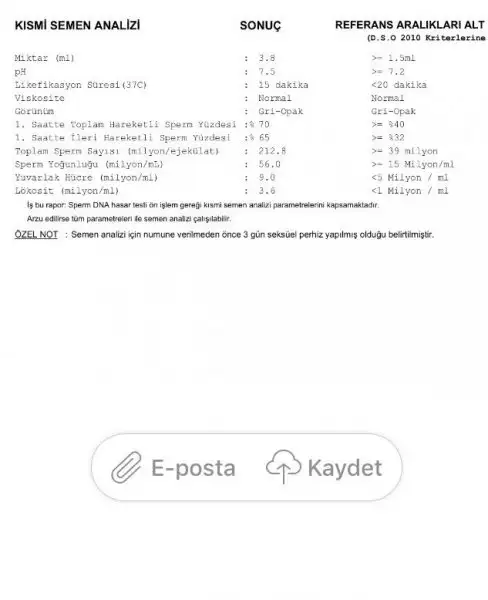 Anladım canım..peki bizde farklı zamanlarda farklı hastanelerin sonuçları var hepsini gönderelim mi? Bir de geç mi dönüş yapıyor?Dönüş yapar varikoselle hasaron baglantisi var yok bilmiyorum benim esimde varikosel var dna hasari da var ama varikosel olmayanlarda da hasar oluyor