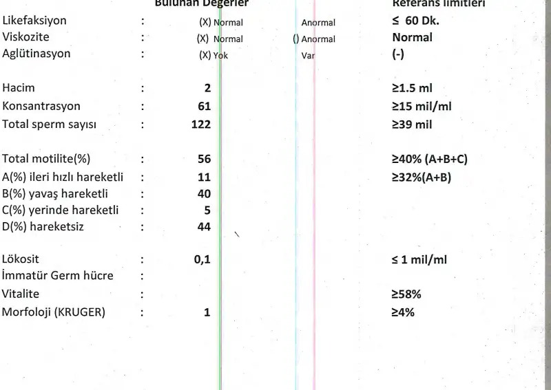 resim atamadım canım değerleri yazdım. Bu arada bizim 6 yaşında bi kızımız var. 2.çocuk için 3 yıldır uğraşıyoruz ama olmadı. Doktora gittik sonuç bu. Hem çok şaşkın, hem de çook üzgünüzAt bakalim yorumlayabiliriz canim benim eşim de tedavi görüyor. Resmi atamasan da uzerindeki degerleri yaz buraya
