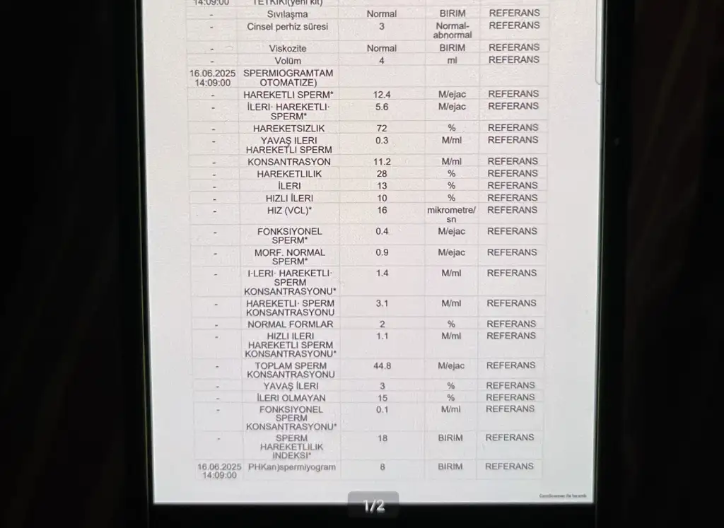 Morfoloji, Sperm tahlil sonucunu yorumlar misiniz