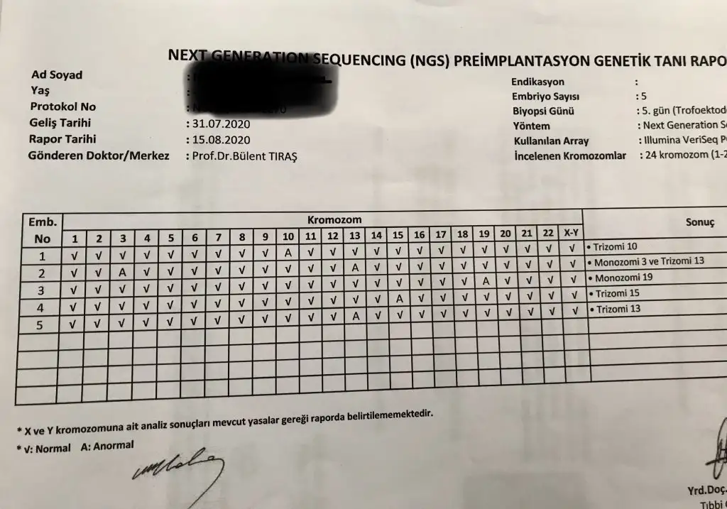 Saol canım çok detaylı bilmiyorum NGS dosyamızı arsive taşımışlar o yüzden detaylı bilgim sadece kaliteleri hakkında yok birinde 9. Digerinde 4. kromozomlarda var mozaiklik monozomi diye hatırlıyorum bız transfere karar verdik ama bir türlü dönüş yapmadılar süreçle ilgili anlamadim