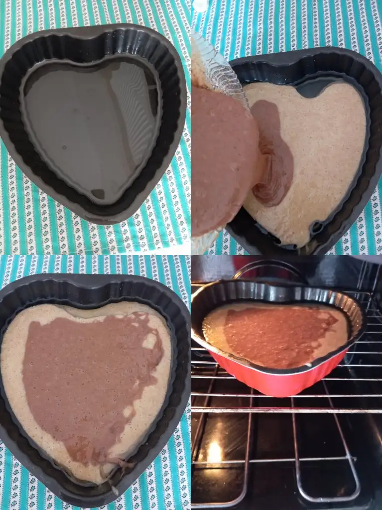 Önce beyaz kısmını kek kalıbına koydum .
