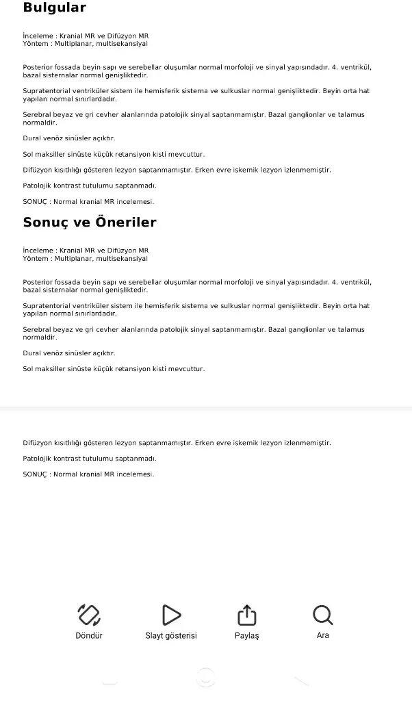 Öncelikle geçmiş olsun hiç stres yapmayın daha sonuç belli bile değil ama msse bile strese girmeyin, benim kız kardeşim daha 17 yaşında baş dönmesi ve el uyuşması şikayeti ile hastaneye gitti mr sonucu ms çıktı ilk duyduğumuzda dünyamız başımıza yıkıldı ama aslında öyle çok korkulacak bir hastalık olmadığını anladık zamanla, sadece hayatınızı daha düzenli yaşamanız daha sağlıklı yaşamanız stresten uzak durmanız hareketli olmanız felan gerekli, bu da zaten her insanın yapması gereken şeyler aslında. Öyle hemen ilerleyen bir hastalık da değil merak etme zaten ms çıkarsa bile hemen tedavi olup ilaca başlıyorsun o uyuşma baş dönmesi vs. Geçiyor