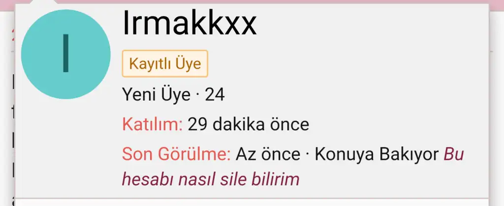 Seni insan yerine koyup gerçek hayatta tanışmak istemem benim eşekliğim. Yani şu karakterde birisine ne diye ılımlı davrandım ki. Basiretim bağlandı herhalde. Burdan da son cevabım olsun. Ben bu üyeyle aynı semtte oturuyorum. Yürüme mesafesinde yani. Kendisiyle de az buçuk sohbetimiz oldu. Kişisel bi kaç bi şey paylaştık. Sürekli banlandığı için telefon no üzerinden konuşmak istedim. KudrAlobarın KENDİMCE umursamaz olduğunu düşündüğüm için de muhabbeti kestik. Saygı duydum. Muhabbet kesilince az ufak saygı da varsa hiçbi şey olmamış gibi forumda konuşmak bana saçma geliyor. Bu kadar. Saygı istiyorum. Dalga geçmeni değil. Selametle.Küsüratlı vermişsin inandırıcı olmuş tebrik ederim![]()