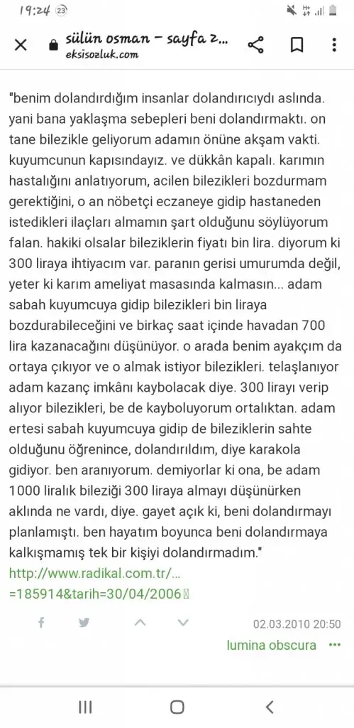 O adamı birine rica ettim ve araştırdı. Uçan kuşa borcu olan birisi. Eşime söyledim. Bildiğiniz delirdi işime karışma diye :) hayal aleminde geziyor.