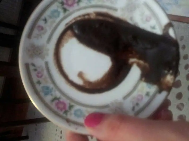 seni çok seven biri var sende onu çok seviyorsun ama bir bayan arkadaşın kıskanıyor ayrılmanıza sebeb olabilir bırakmayın sevgilinizi yoksa elinizden gidecek.Sanki bir uçurumun kenarındasınız hanede birisi bir sıkıntı yaşayacak sizde etkileneceksiniz.Birde hastalık haberi alacaksınız yatan birisi var falda.Kocaman çirkin bir ayı çıktı falda seni birileri çekilmez kötü huylu birisi yapmış çok agrasif davranıyrsun zaman zaman .Kocaman bir ateş tam fincanın ortasında çıktı.Sen bir olaydan arınacaksın.Sevdiklerine duygularını açıklarken dikatli olmalısın ilişkinin uzun sürmesini istiyorsan çok dikkat etmelisin.Fincanın tam kenarında bir elbise çıktı.Senin planın gerçekleşecek tadını çıkar.Yeni birisi var falda. Bir yerde oturmuş iki kişi konuşuyorsunuz. Hayırlı gibi gözüküyor canım .Kocaman bir boğa çıktı.Haneden birisinden bir güç kuvvet alacaksın kendine geleceksin.