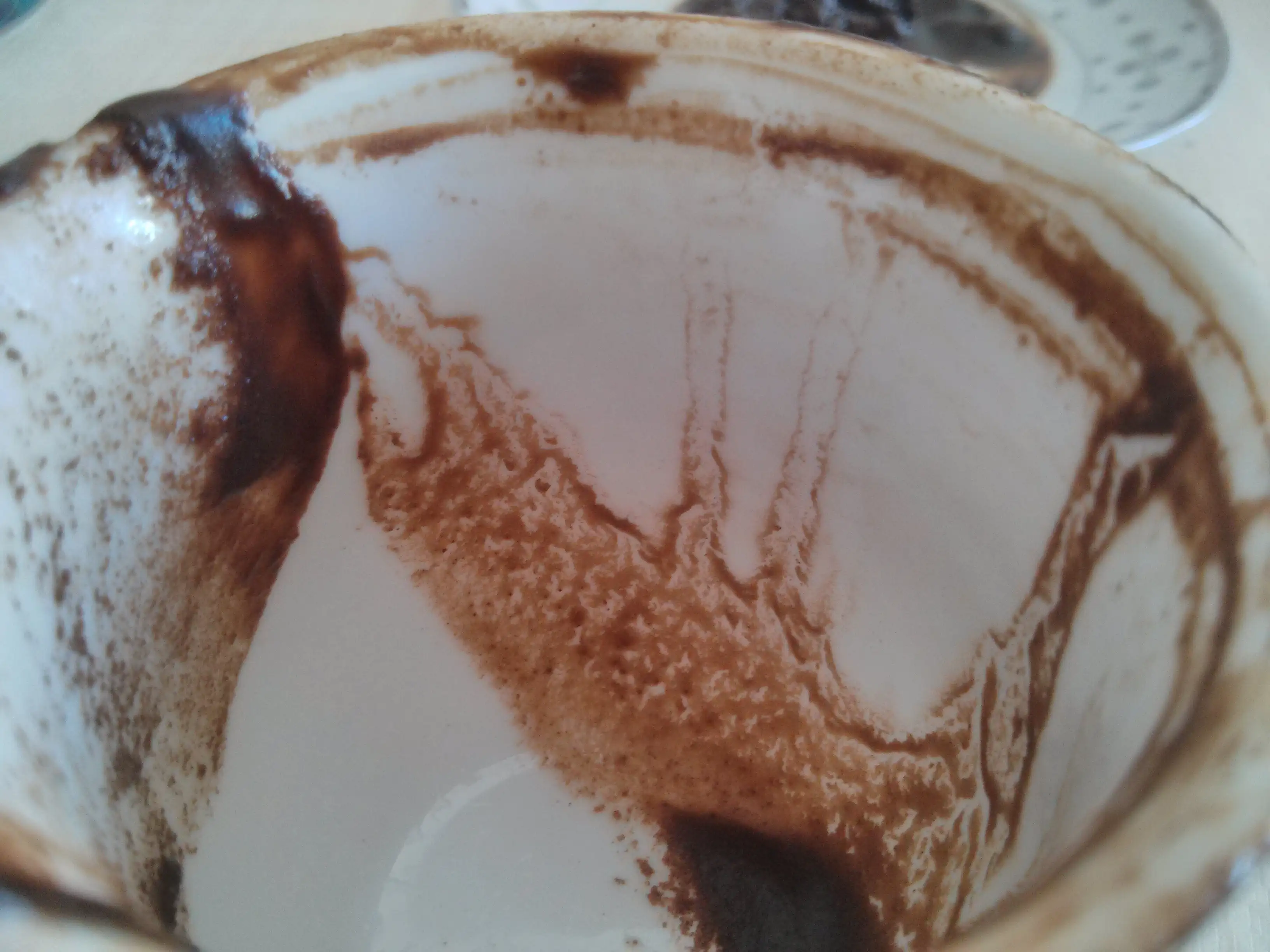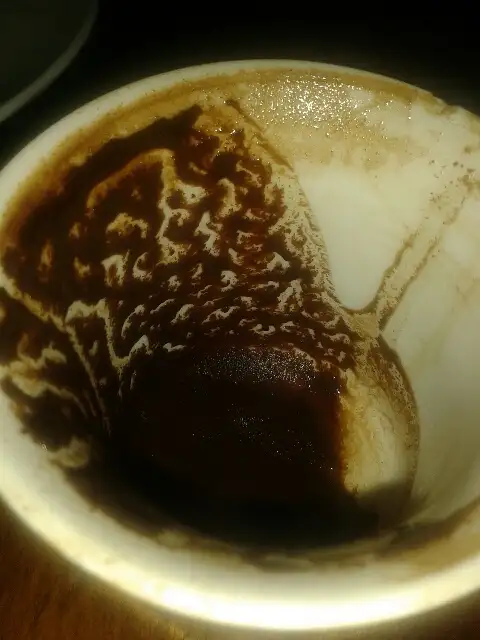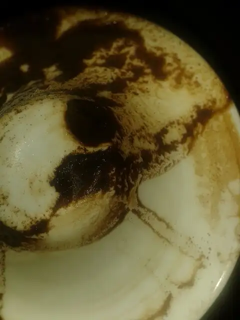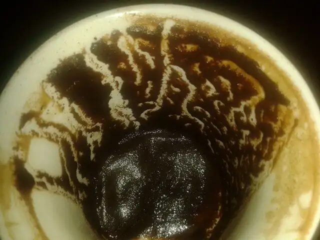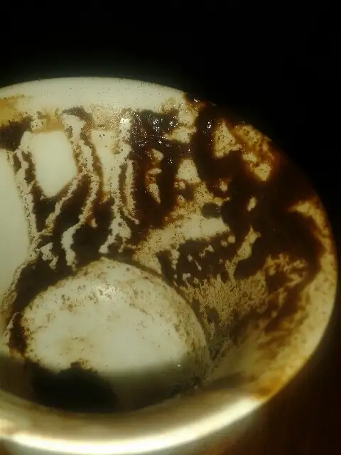 Tabağında çok yaşlı bir kadın silueti var. Bu fincanda gördüğüm mezarla ilgili olabilir.