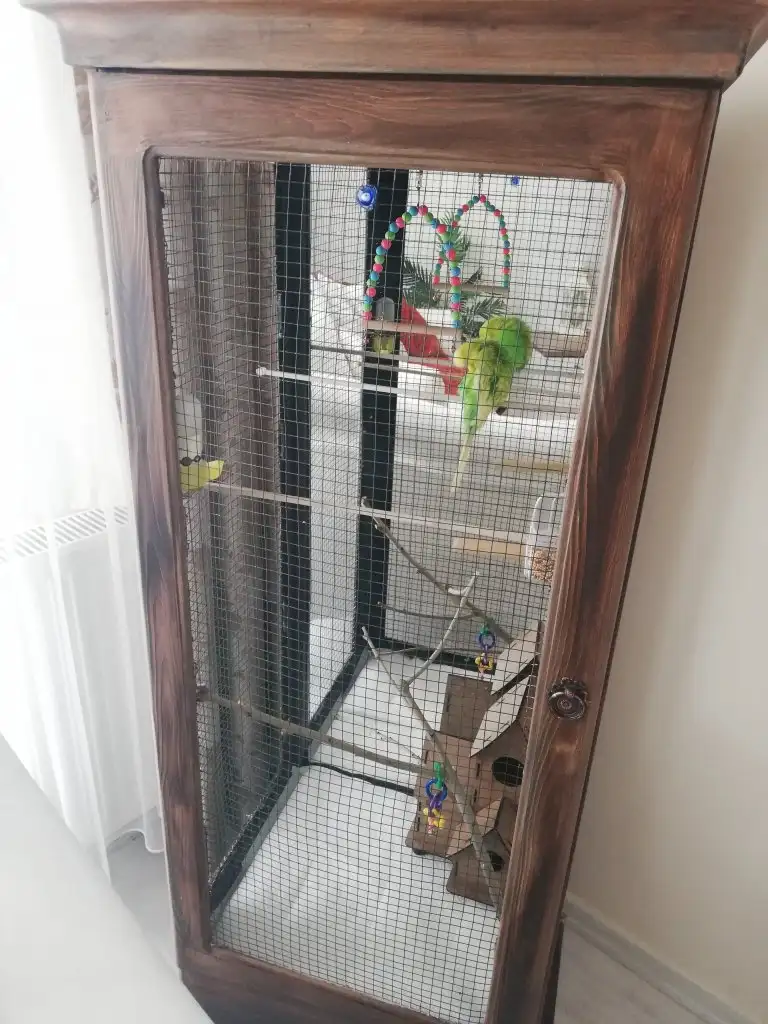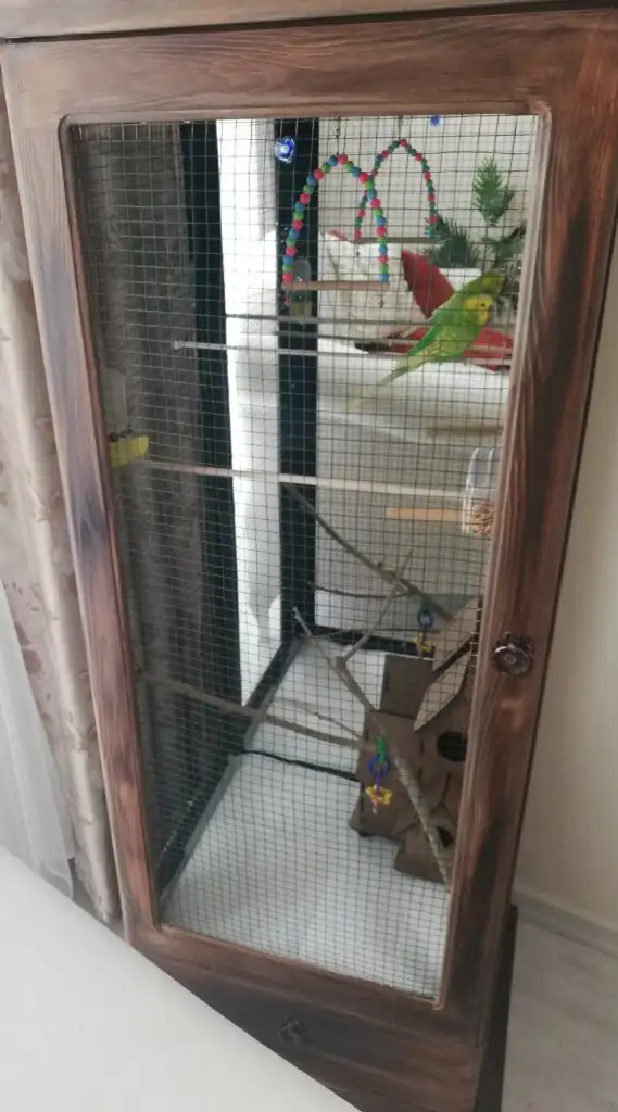 Eskı bir vıtrının camını cıkardım tel kapadım boyadım boyle daha mutlu, Kucuk kafesde olmasın hergun en az 1 saat ucsun bizimki 6 saat dısarda uykusu gelince kendısı kafesine giriyor uyuyor