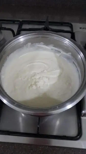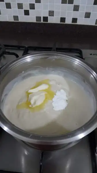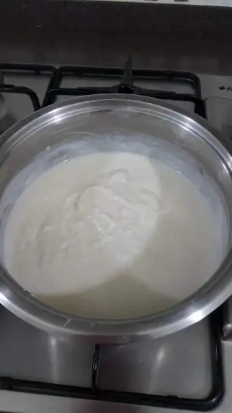 Krema için sütü şekeri unu krem şantiyi bir tencereye alıp muhallebi kıvamına gelinceye kadar pişirelim..