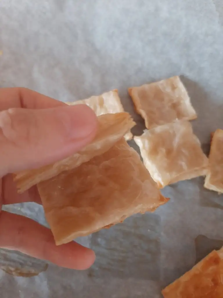 Buzluktan cikardigimiz milföyleri oda sicakliginda 2-3 dakika beklettikten sonra once ikiye sonra 4 es parcaya bölüp pisiriyoruz.