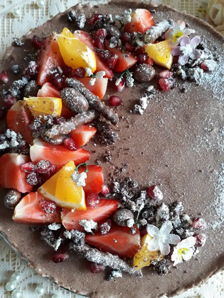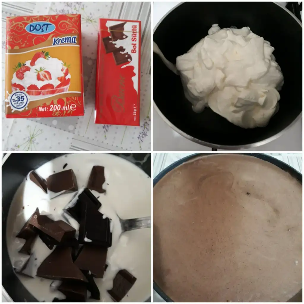 Kremayı bir kabın içine alıyoruz. Ocakta çok ısıtmadan sadece ılınana kadar karıştırıyoruz ve ocaktan alıp çikolatayı içine atıp karıştırarak çikolatanın erimesini sağlıyoruz. Eriyen ganajimizi muhallebinin üzerine döküyoruz ve dolapta katılaşana kadar bekletiyoruz .Ben ganaji döktükten sonrada bir gece beklettim.