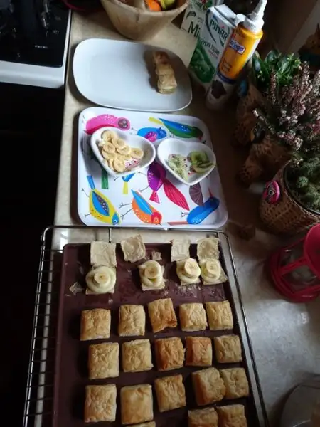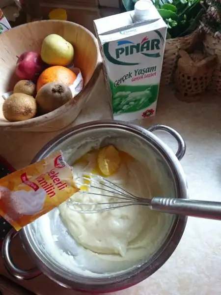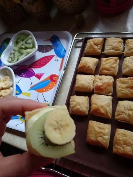 - Muhallebi ve milföyler ılıdıktan sonra bir araya gelebilirler :) Eki Görüntüle 2118057 Kabaran milföyleri ortadan ikiye ayıralım. Her iki parçasına da krema sürelim. Kapatmadan önce dilerseniz bir dilim muz kivi veya sevdiğiniz bir meyveden de yerleştirebilirsiniz.Eki Görüntüle 2118058