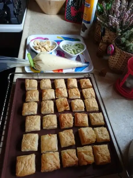 - Milföylerimizi 180 derece ısıtılmış fırında kabarıp pembeleşinceye kadar pişirelim.Eki Görüntüle 2118051