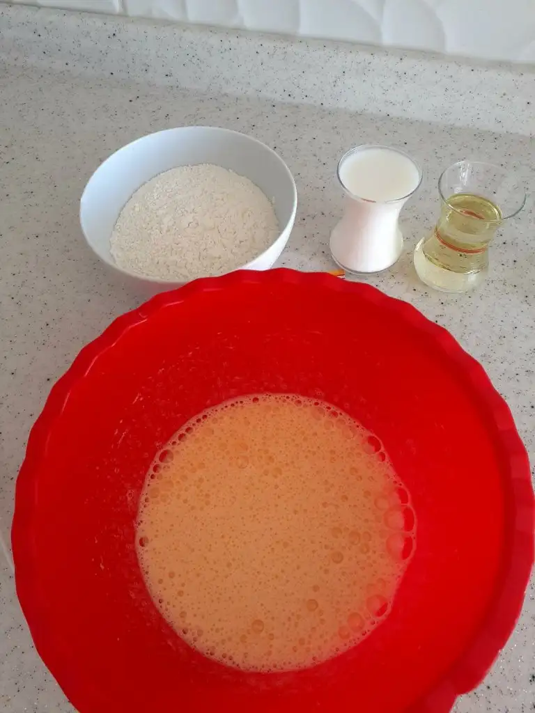 Öncelikle Yumurta ve şekeri çırpıyoruz daha sonra sıvı yağ süt ekleyip çırpmaya devam ediyoruz yavaş yavaş unu ilave edip kıvam alana kadar karıştırıyorz.Eki Görüntüle 2831250 Eki Görüntüle 2831251