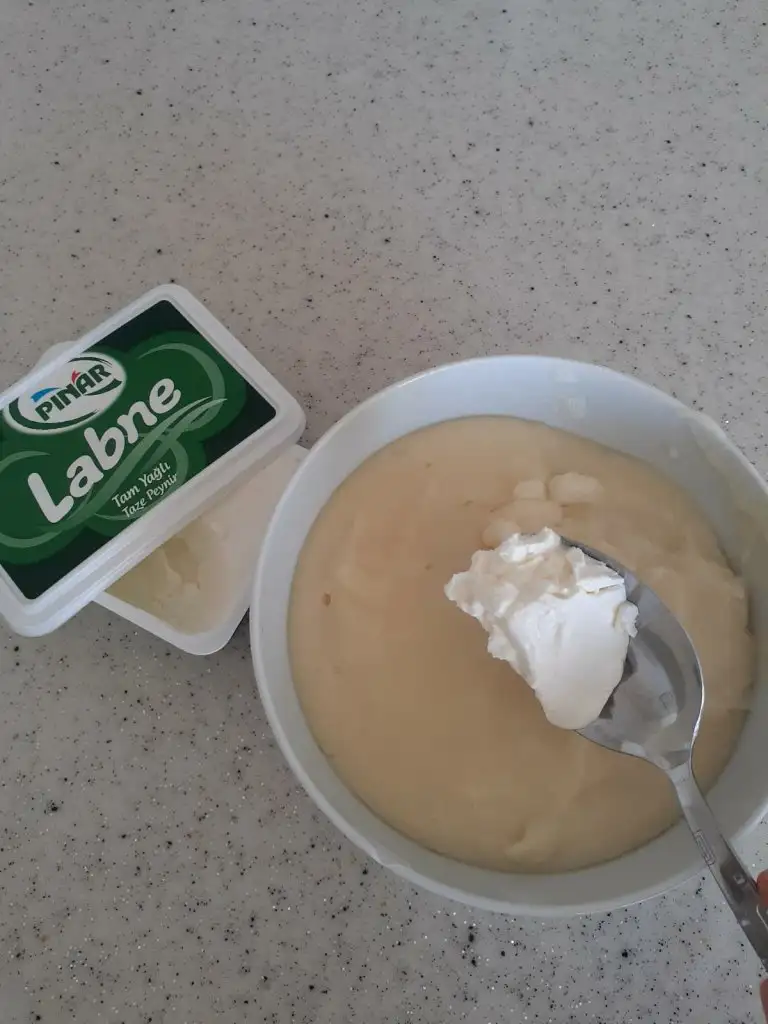Muhallebi soğuduktan sonra pınar labne ekleyip çırpmaya devam.Eki Görüntüle 2831260 Eki Görüntüle 2831261