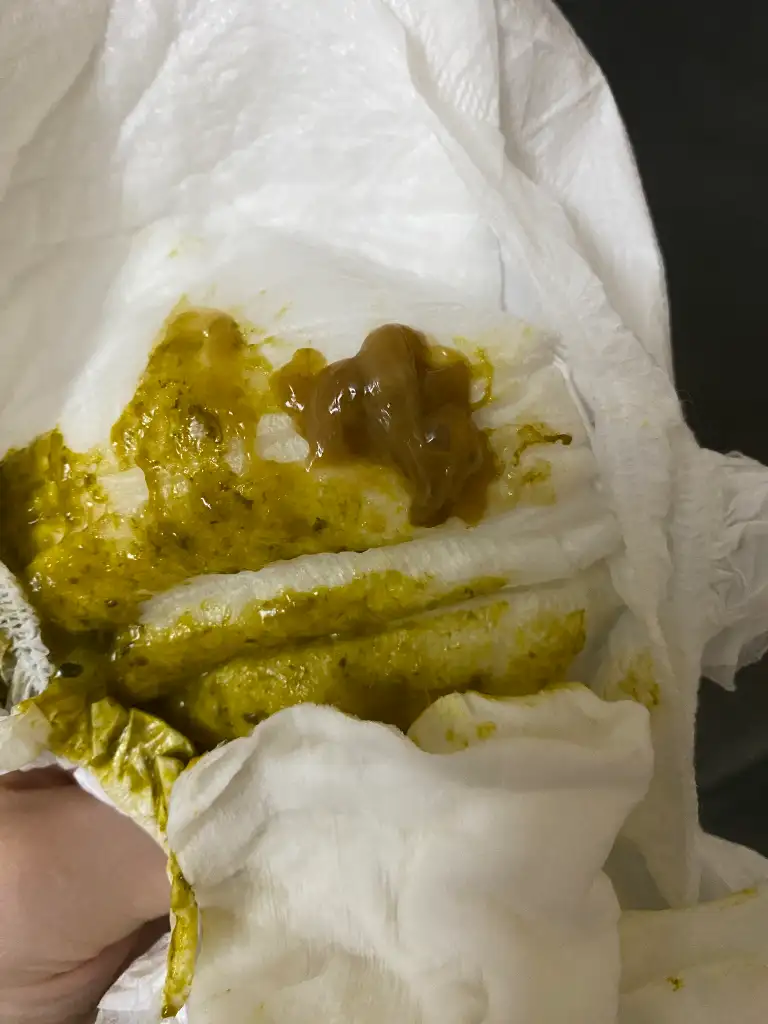 Kan, aynı tip kan bende de oluyor hafif dağılmış gibi durduğu için daha önceden görmeyen pek anlamayabilir.Kan gibi değil sanki ya ama vakit kaybetmeden doktora görünün artık hemen yarın hatta gıda alerjisi yada siz üsüttünüz bebeğe geçti