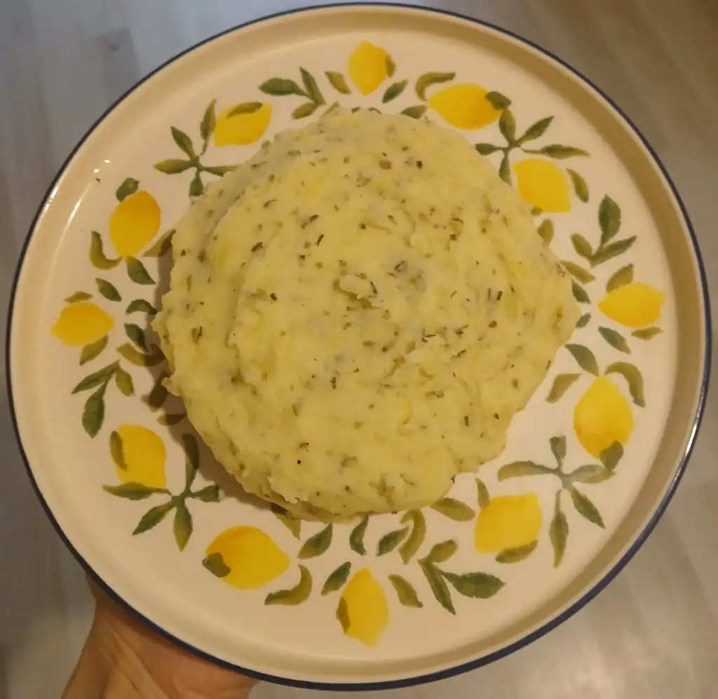 patatesleri ezdikten sonra muskati rendeleyin, kekigi ve biberiyeyi ekleyin (benim biberiyem biraz buyuktu mikserle kekik boyuna getirdim)
