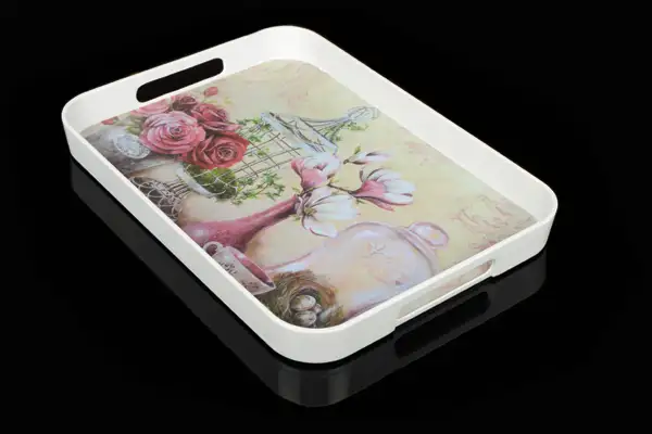 Büyük servis tepsim, kesme panom ve bıçaklarım, bu kez mor değil kırmızı