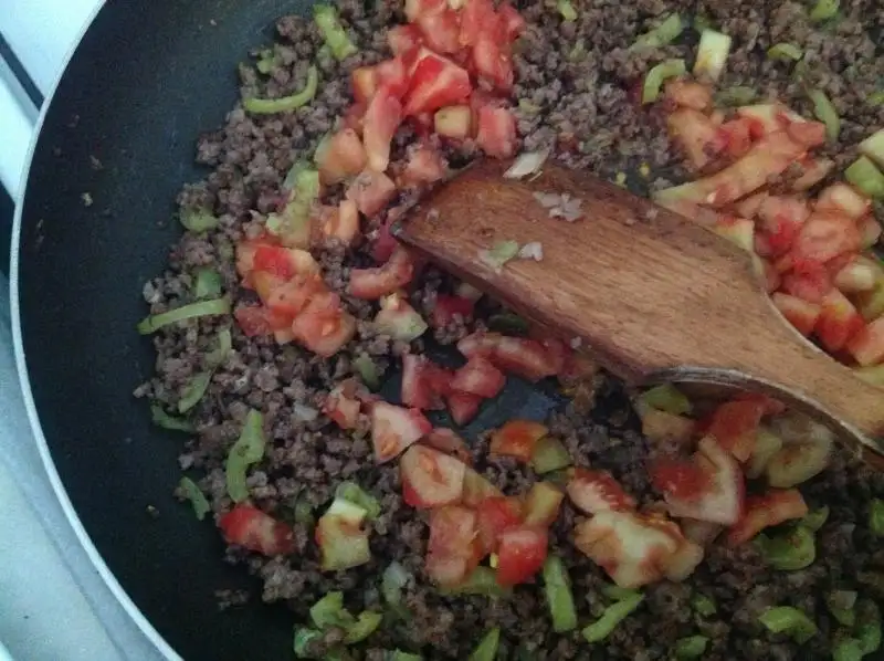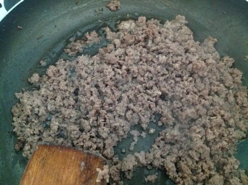 Önce kıymayı birazcık suyla yağla ve tuz tavaya alıp suyu çekene kadar pişirip