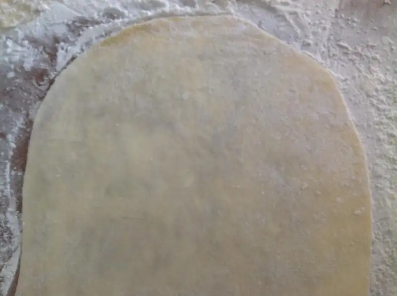 Yapılışı :Önce yufkanın hamurunu yapıp dinlendiriyoruz malzemeleri yoğurma kabına alıp azar azar un ilavesi yaparak kulak memesinde biraz daha yumuşak bir hamur elde ediyoruz