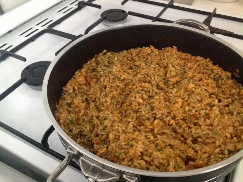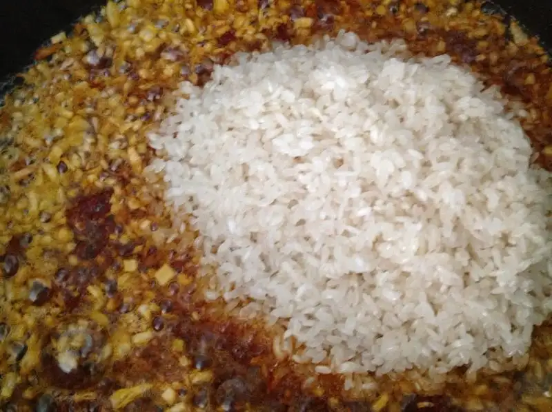 Soğan hafif pembelişten sonra salçayı kavurup pirinçi ilave ediyoruz