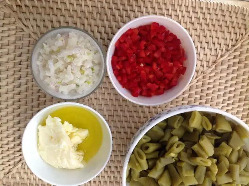 1 kğ taze fasulye ( küçük doğranmış ve tuzlu suda haşlanıp süzülmüz )