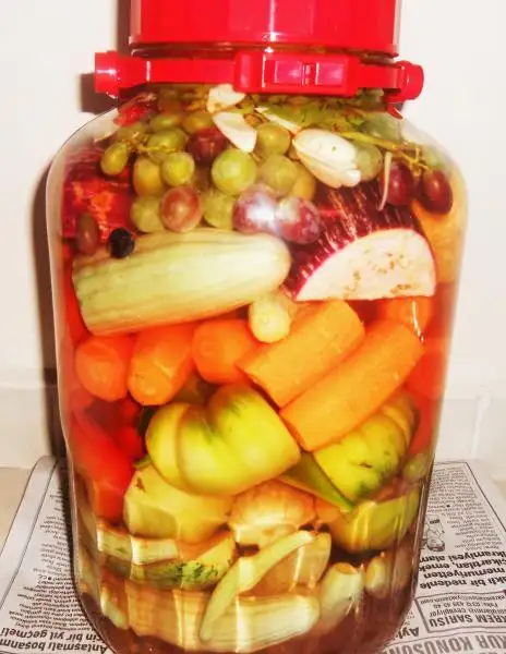 kapağını sıkıca kapatıp şöyle bir ters düz edip sirke ile tuzlu suyun iyice karışmasını sağlayın...