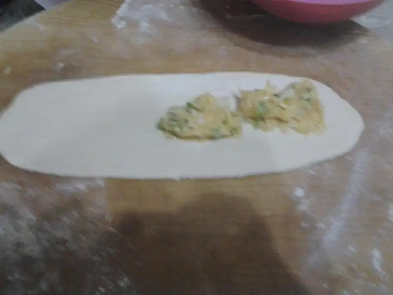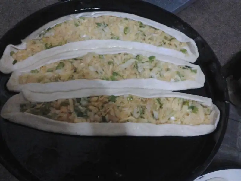hamuru uzunca açıyoruz yarım parmak kalınlığında, arasına harcı koyup pişiriyoruz..bu kadar basit ve kolay...
