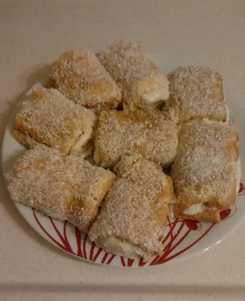 sonrada muzların bulunduğu kısımdan pastaları rulo yapıp önce süte sonrada hindistan cevizine batırıyoruz