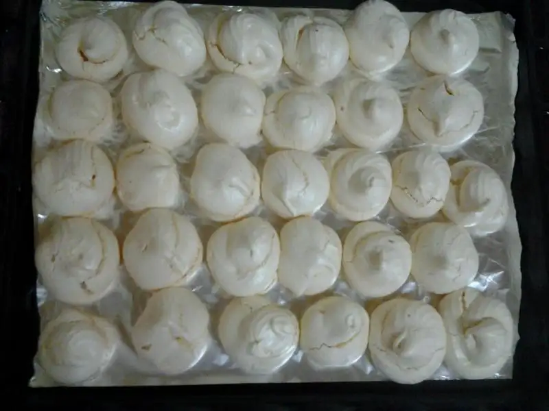 yumurtanın beyazlarını bir tencereye alın, şekeri ve vanilyayı tuzuda ekleyin, 5-6 dakika mikserin önce yavaş sonra hızlı devrinde çırpın...krema kıvamını alınca ocağınızın en küçük yerinin en kısık kısmına alın tencereyi, biryandan da yüksek devirde çırpmaya devam edin...5 dakka daha çırpın..nekadar çok çırpılırsa okadar güzel olur...