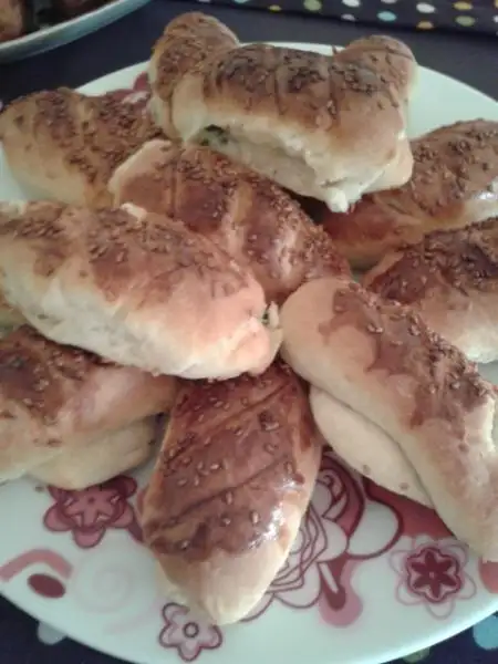 Şeker ve yaş mayayı ılık suda (yarım çay bardağı kadar ) eritiyoruz , Yumurtanın sadece akı , tuz ve margarini ekledikten sonra yavaş yavaş yumuşak bir hamur elde edene kadar unu ekliyoruz.