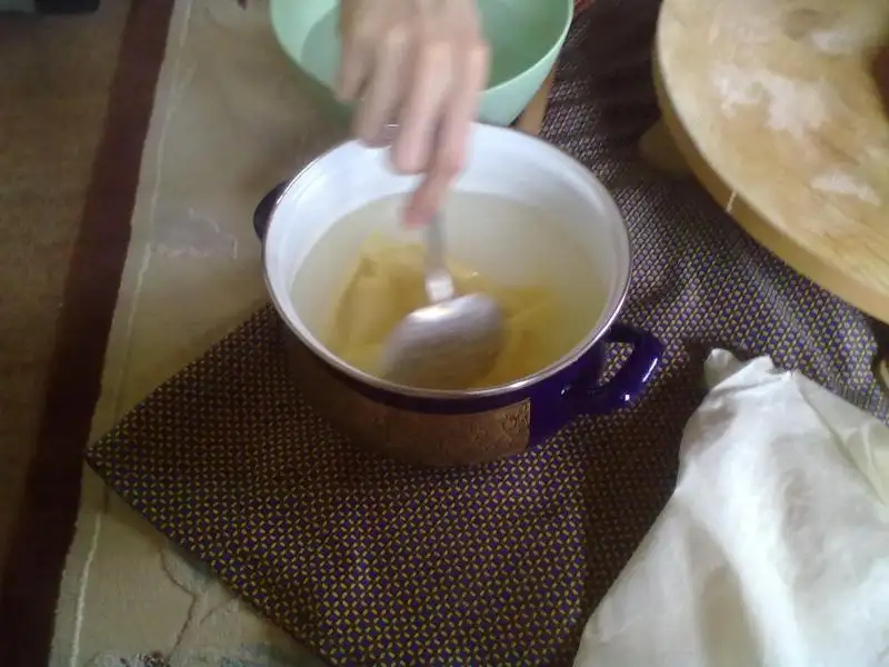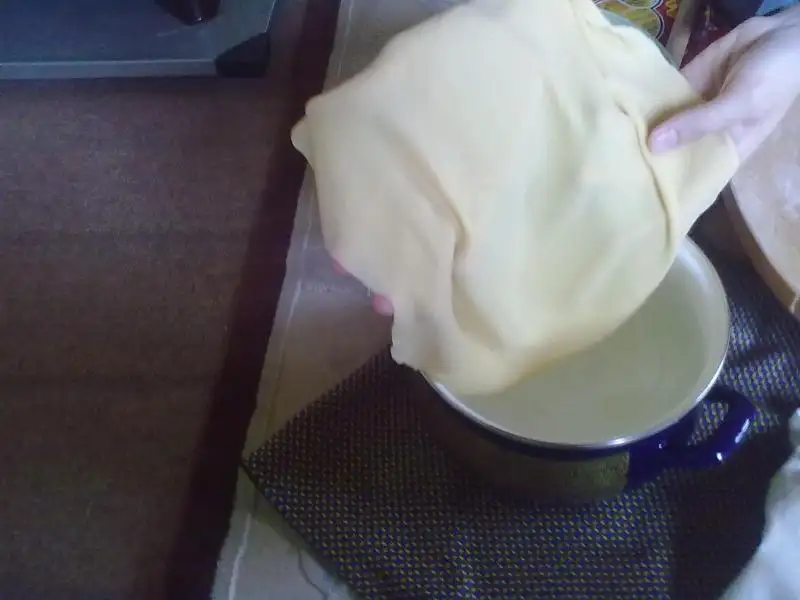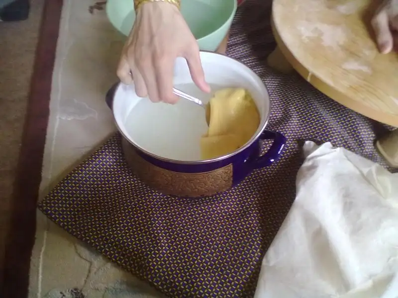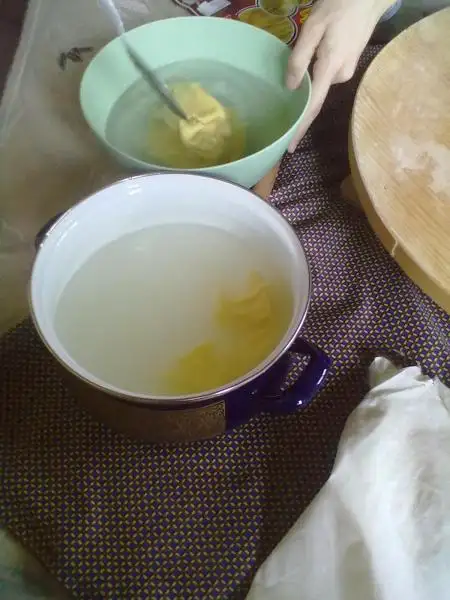 açtığımız yufkaları kaynar su dolu tencereye tek tek atıp hemen çıkarıp sonra buz gibi soğuk suya koyuyoruz vakit kaybetmeden...