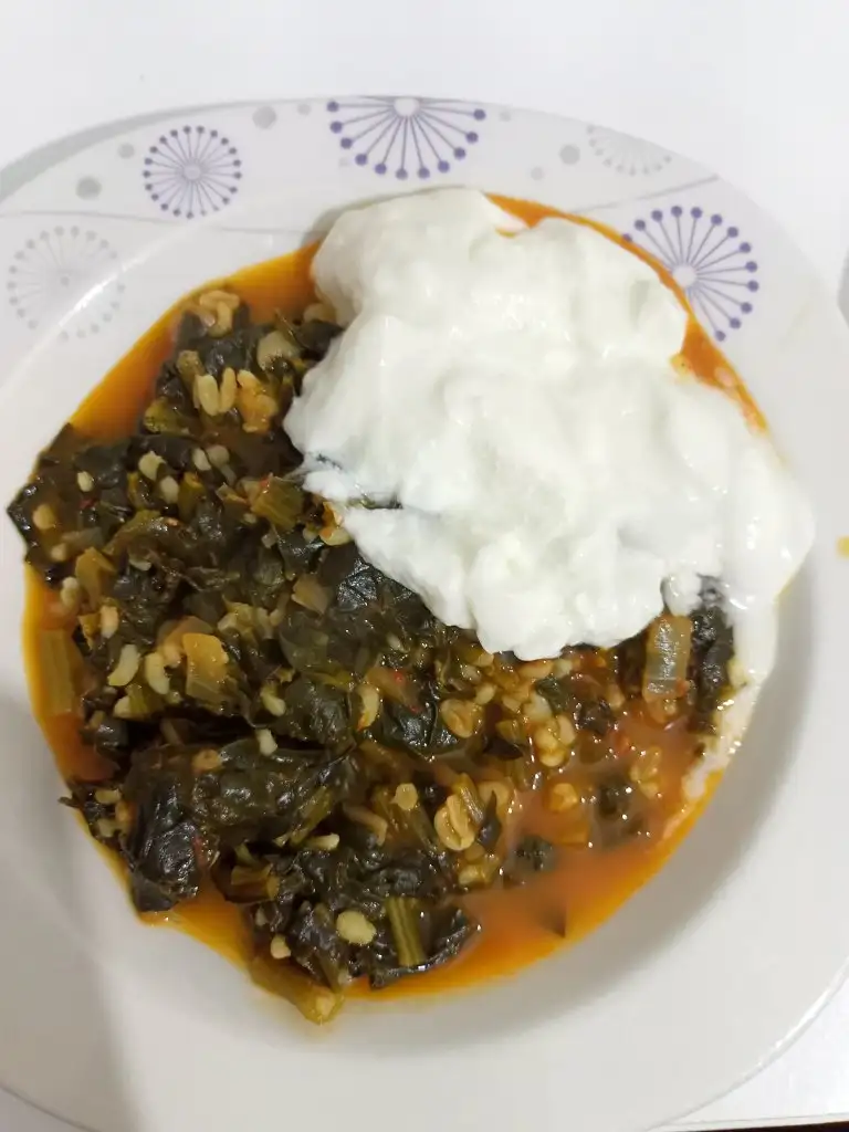 Afiyet olsunBende dün akşam 5 yemek kaşığı pırasa yemeği 8 kaşık kısır ve 4 kaşık yoğurt yedim. Bu sabah 1 muzla ve sütle yapılmış 1 kase granola yedim