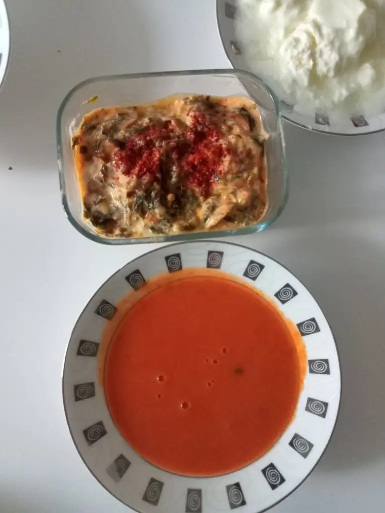 akşam yemeği 1 tabak pırasa yemeği , 6 tane falan sarma ve bir kase yogurt
