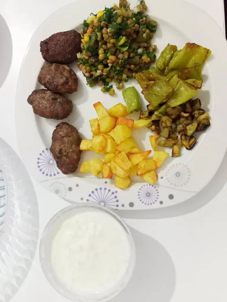 Aksam iki küçük dilim balık , 1 tabak hazır patates