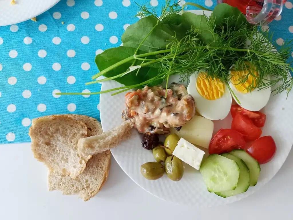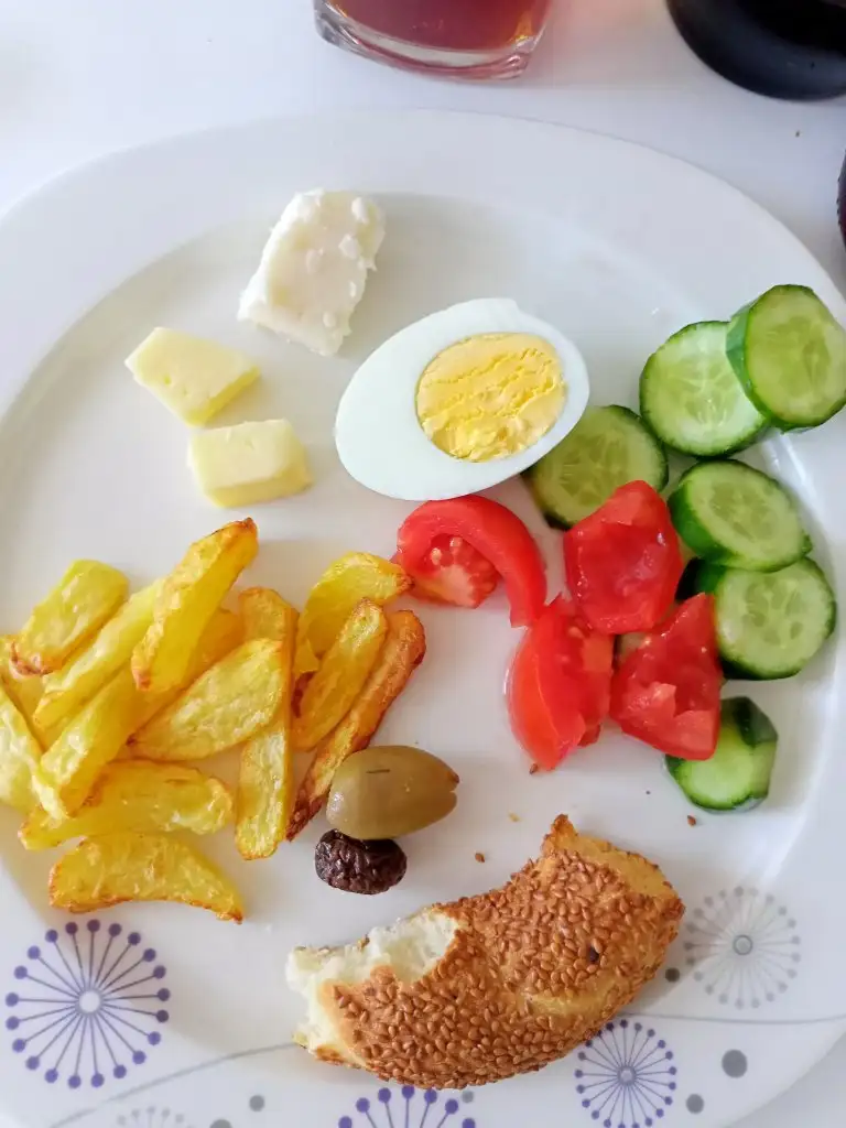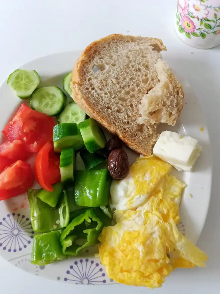 Kahvaltıya ek görünen kadar daha yumurta, görünen kadar daha ekmek, 1 dilime yakın daha peynir ve yaklaşık 1.5 yemek kaşığı fıstık ezmesi çikolata 😳