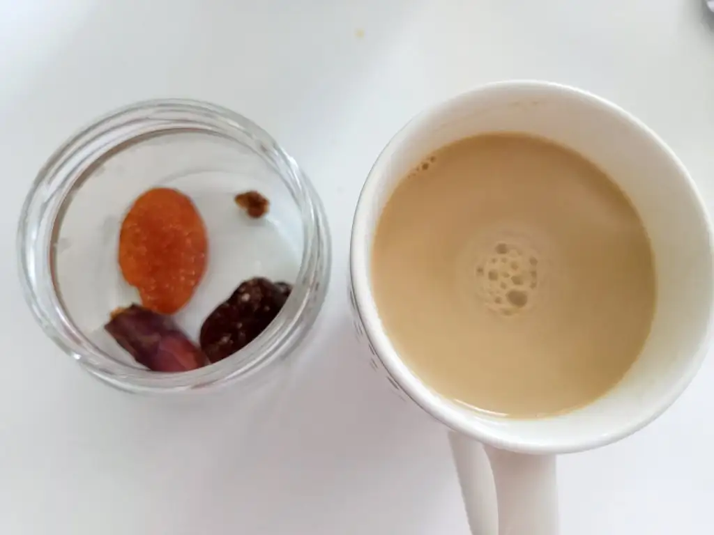 Ara öğünde türk kahvesi , 1 kurabiye,b1 meyve