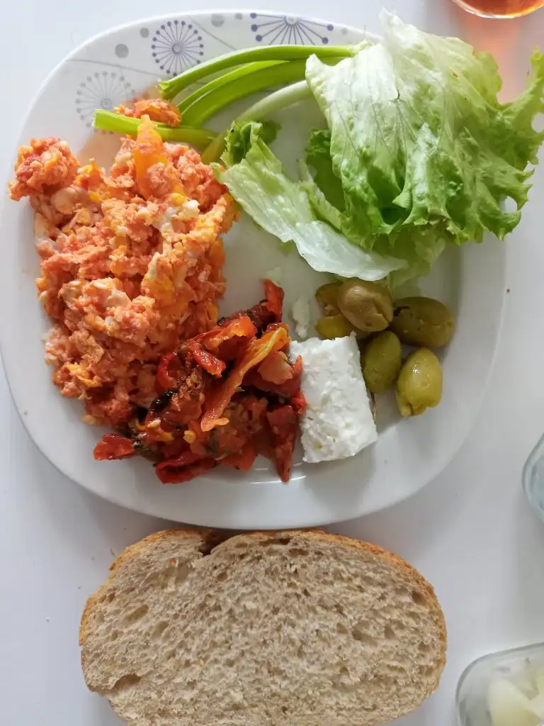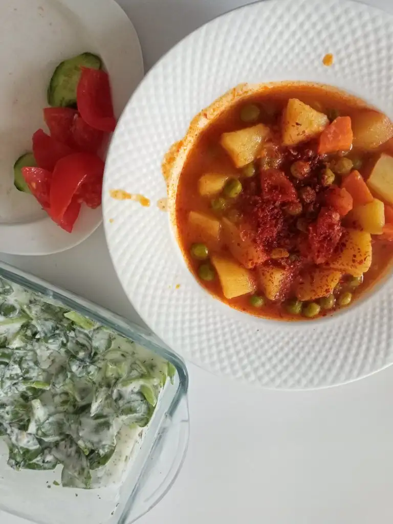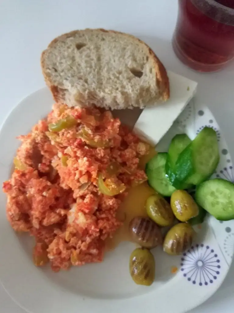 2.5 yemek kaşığı makarna, 2 çilek yedim