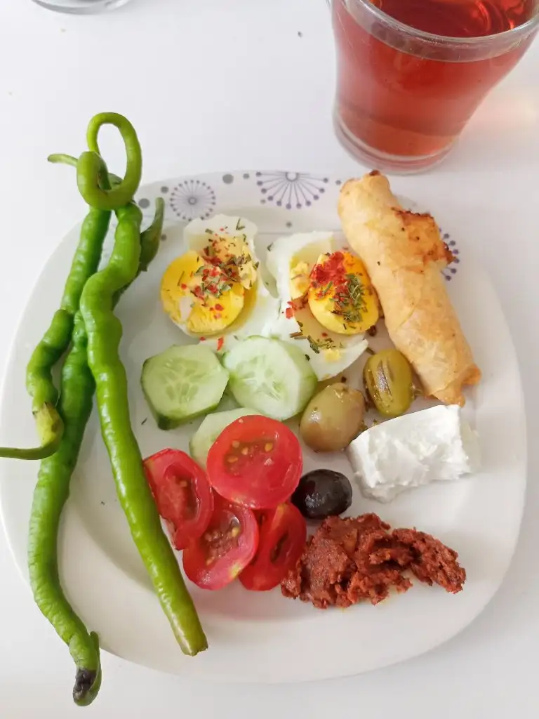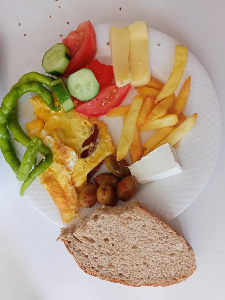 akşam 4 köfte, 2 falafel, hazır patateslerden küçük bir kase , çoban salata, 3 bardak ayran, 10 kiraz