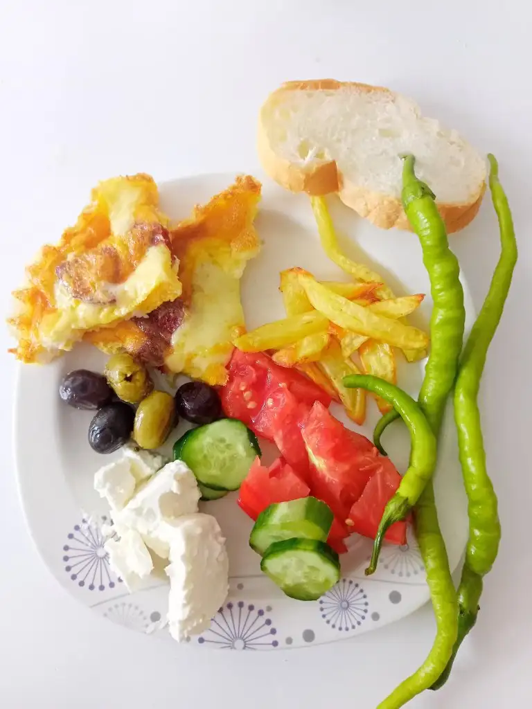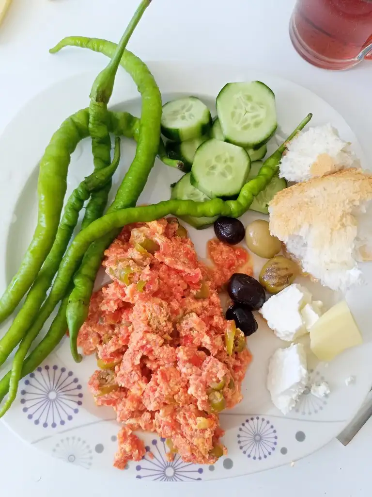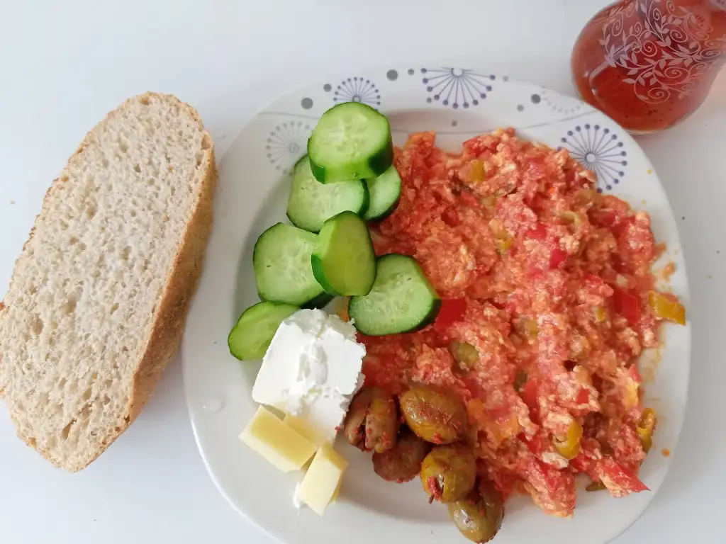 Sabah 1 yemek kaşığı kadar daha menemen, küçük parça ekmek