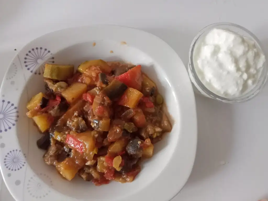 akşam ek 1 kepçe daha yemekten biz aş deriz :) 3 kaşık patlıcan yemeği, 2 kurabiye